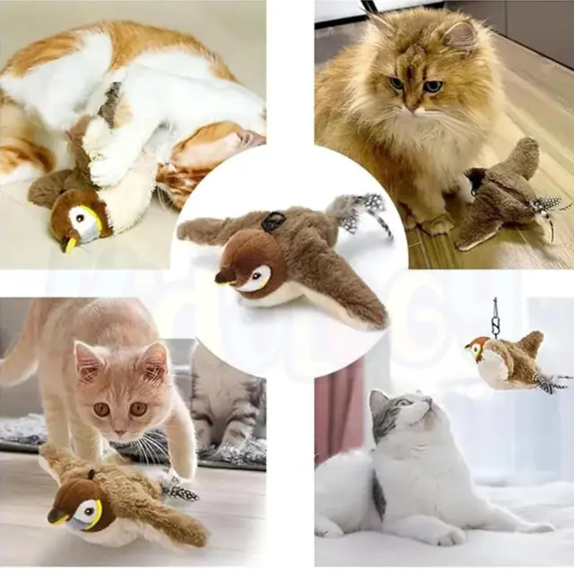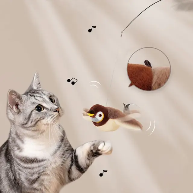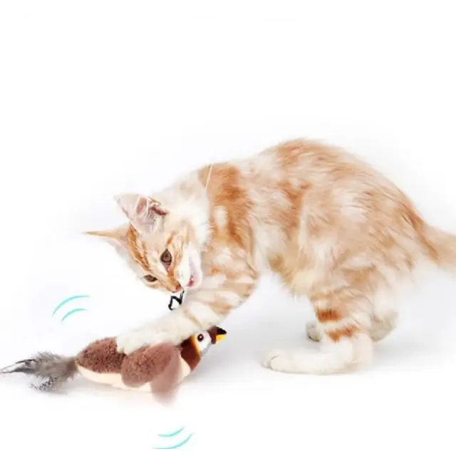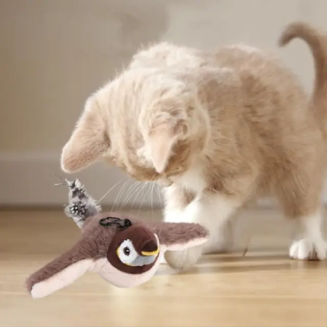Samodejni senzor gibanja sproži realistično mahanje in čivkanje, da pritegne vašo mačko.