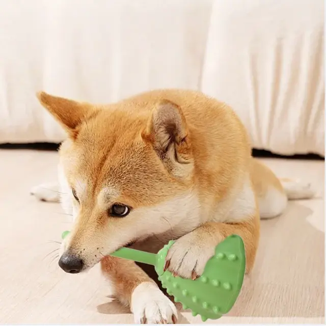 Žvečljiva in čiščenje zob: Izdelana iz visokokakovostnega TPR materiala, je ta igrača za žvečenje zasnovana tako, da prenese navdušeno žvečenje. Teksturirana površina pomaga masirati dlesni in čistiti zobe, ko vaš pes žveči, kar spodbuja dobro zobno higieno. Izbokline in grebeni na žogi pomagajo strgati zobne obloge in zobni kamen, kar zmanjšuje tveganje za zobne težave. Redno žvečenje te igrače lahko pomaga ohranjati pasje zobe čiste in zdrave, preprečuje slab zadah in druge zobne težave. To je zabaven in učinkovit način za ohranjanje ustnega zdravja vašega psa, hkrati pa mu zagotavlja zadovoljivo izkušnjo žvečenja. Material je tudi varen in nestrupen, kar zagotavlja dobro počutje vašega hišnega ljubljenčka.