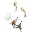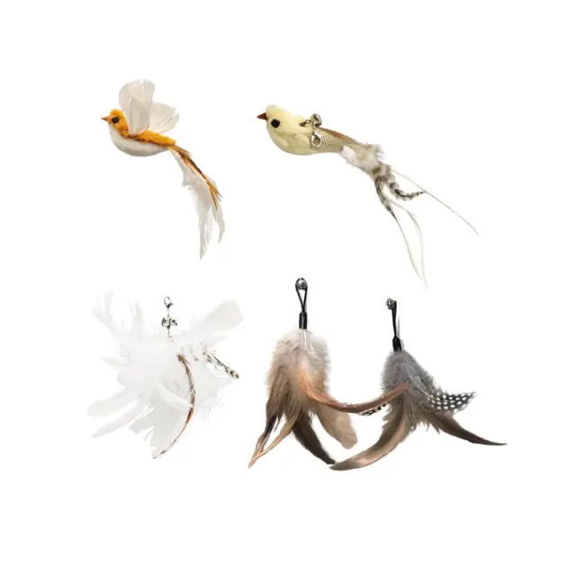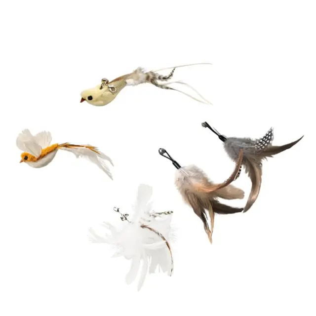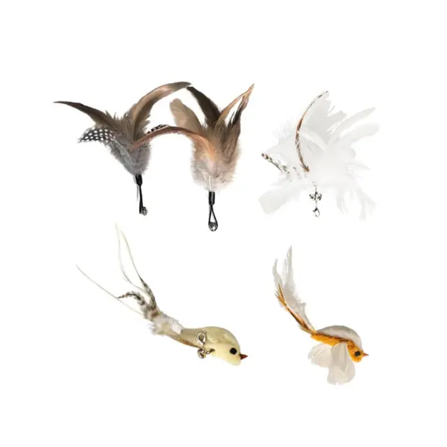 Priročna zasnova s kavljem: Priročna zasnova s kavljem omogoča enostavno pritrditev in zamenjavo pernate glave. Ta uporabniku prijazna funkcija omogoča preprosto zamenjavo peres, kar zagotavlja, da ima vaša mačka vedno spodbudno in privlačno igračo. Varen kavelj preprečuje, da bi se peresa med igro odlepila, kar zagotavlja varno in prijetno izkušnjo za vašega ljubljenčka. Ne glede na to, ali igračo pritrdite na palico ali jo preprosto obesite, da jo vaša mačka lovi, zasnova s kavljem ponuja vsestranskost in priročnost. Trdna konstrukcija zagotavlja, da bo kavelj vzdržal tudi najbolj navdušene igre, zaradi česar je ta set igrač zanesljiv in dolgotrajen dodatek k zbirki igrač vaše mačke.