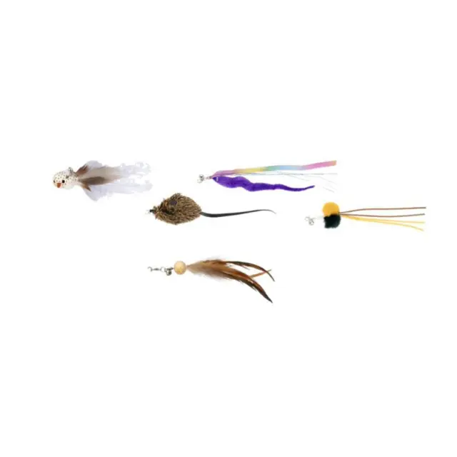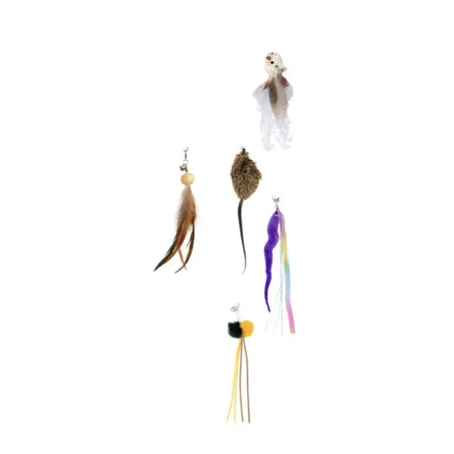 Raznolikost zamenljivih nastavkov: Ta set igrač za mačke vključuje pet različnih nastavkov iz perja, ki zagotavljajo različne teksture in barve, da vaša mačka ostane zabavna. Zamenljiva zasnova vam omogoča enostavno zamenjavo nastavkov, ko se obrabijo ali vaša mačka izgubi zanimanje. To podaljša življenjsko dobo igrače in zagotavlja, da ima vaša mačka vedno nekaj novega in vznemirljivega za igro. Različni stili perja ponujajo različne stopnje stimulacije, ki ustrezajo individualnim preferencam in slogom igre vaše mačke. Enostavna zasnova s kavljem omogoča hitro in enostavno menjavo nastavkov.