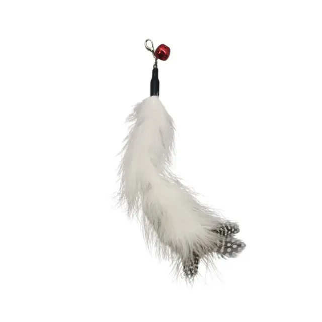 Zvonček za dodatno navdušenje: Vsaka glava s perjem je opremljena z občutljivim majhnim zvončkom, ki doda dodatno plast navdušenja igri. Nežno zvonjenje zvonca pritegne pozornost vaše mačke in jo spodbudi, da lovi in udari po igrači. Zvonček je skrbno zasnovan tako, da je nežen do sluha vaše mačke, zagotavlja slušno stimulacijo, ne da bi bil premočan. Ta funkcija izboljša interaktivno izkušnjo in ohranja vašo mačko zabavno dlje časa. Zvok zvonca posnema zvok plena, kar dodatno spodbuja lovske nagone vaše mačke in naredi igro še bolj privlačno.