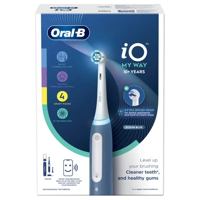 Inovativni magnetni pogonski sistem iO natančno dovaja energijo do konic ščetin, ki z nežnimi mikrovibracijami drsijo od zoba do zoba ter tako ustvarijo učinkovito in prijetno izkušnjo čiščenja. Izpopolnjeni pametni senzor pritiskanja vas opozori, ko ščetkate pravilno, ter tako poskrbi za zaščito dlesni. Tehnologijo iO odlikuje tudi interaktivni prikazovalnik, ki omogoča osebno prilagojeno vodenje med ščetkanjem v realnem času ter nastavitve zobne ščetke po meri. Umetna inteligenca Oral-B iO vas v aplikaciji Oral-B vodi do najbolj temeljitega čiščenja. Doživite ščetkanje zob, ki ga boste videli, slišali in čutili drugače.