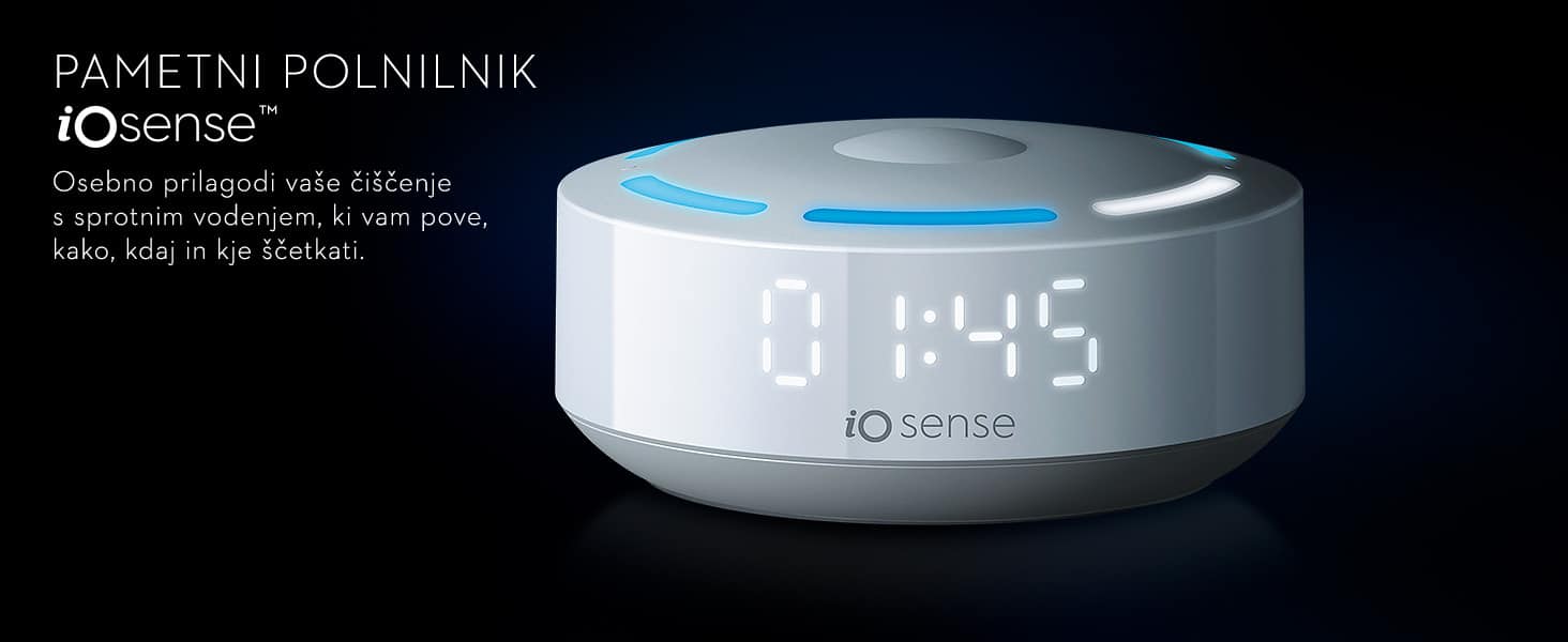 Vsebina: 1 ročaj iO10 z glavo ščetke Ultimate Clean, 1 potovalna torbica-polnilnik, 1 pametni polnilnik iO Sense za hitro 3-urno polnjenje, 1 držalo za zamenljive glave