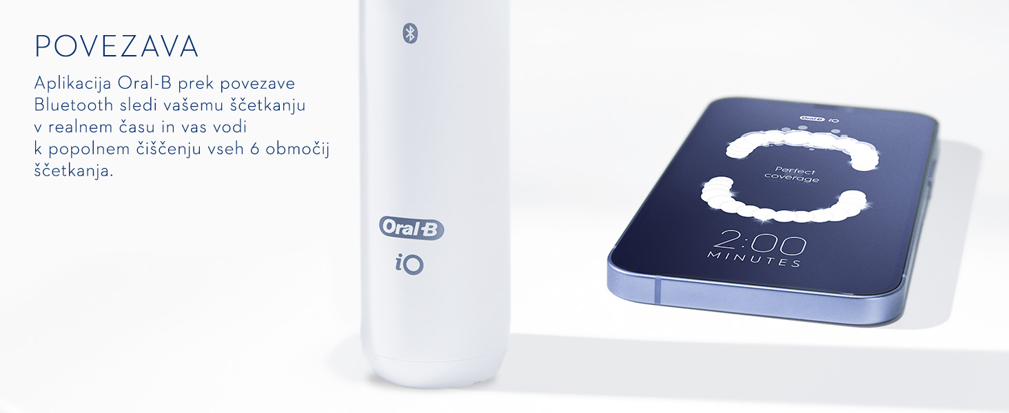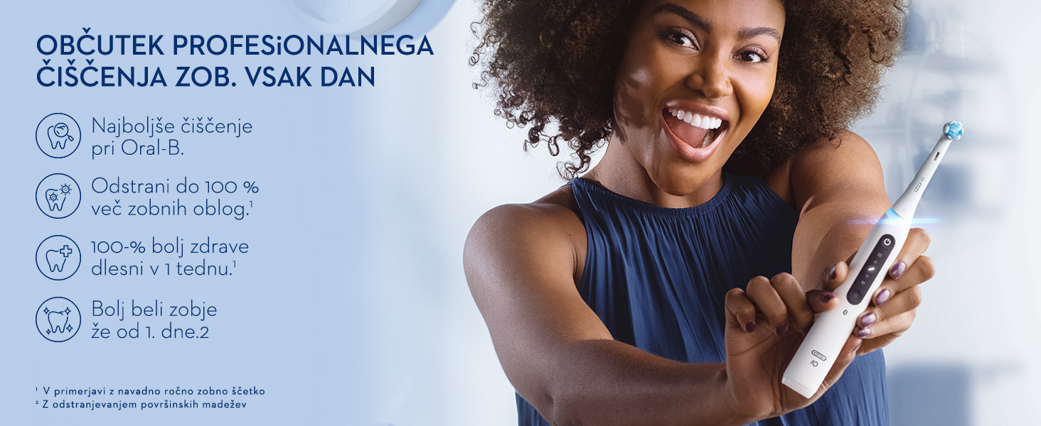 NAJBOLJŠA ŠČETKA ZA UMIVANJE ZOB, ki jo ponuja Oral-B, zahvaljujoč REVOLUCIONARNI iO TEHNOLOGIJI za občutek profesionalne čistoče in nežnega ščetkanja zob.