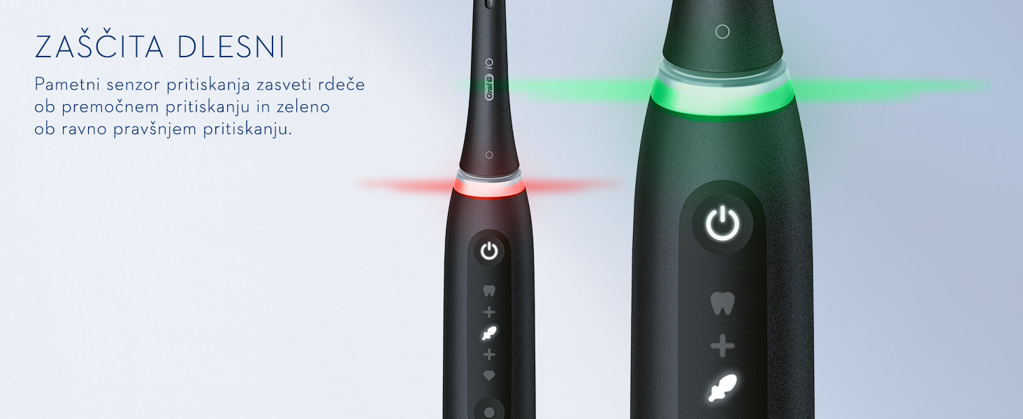 PAMETNI SENZOR PRITISKA z rdečo, belo in zeleno označuje, ali ščetkate premočno, prerahlo ali z ustreznim pritiskom.