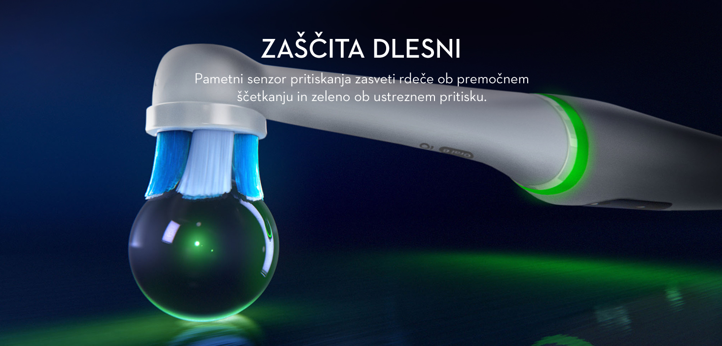 Prikazuje optimalno stopnjo pritiskanja med ščetkanjem in vas opozori ob premočnem pritiskanju