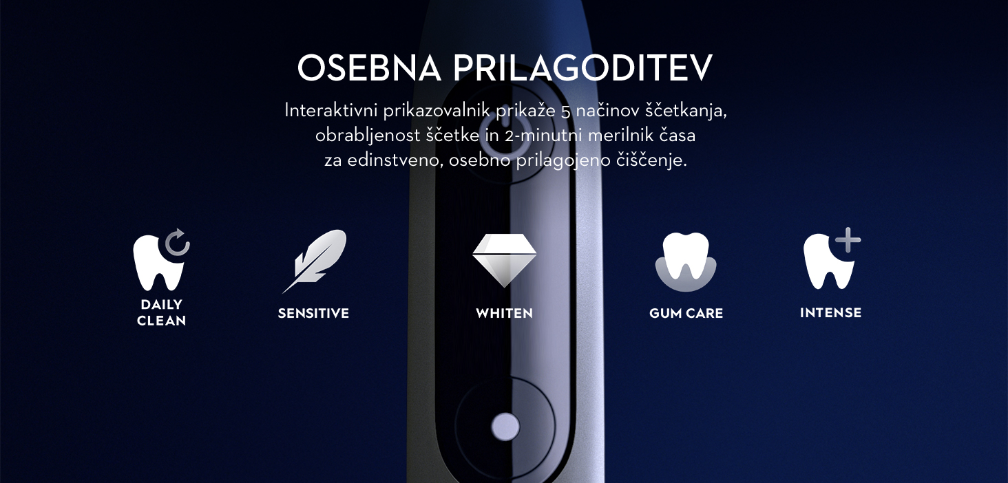 Na voljo je 5 pametnih načinov ščetkanja: Daily Clean za vsakodnevno čiščenje, Sensitive za vse z bolj občutljivimi zobmi, Whitening za beljenje, Gum Care za dlesni ter Intense za bolj intenzivno čiščenje.