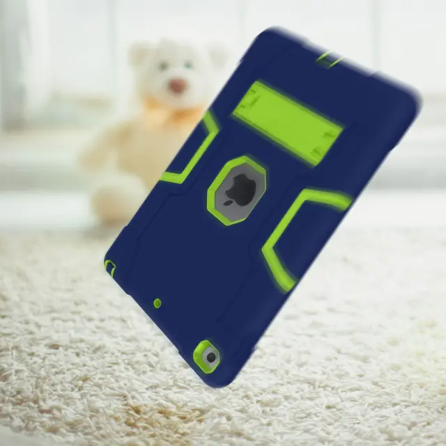 iPad 9 2021, iPad 8 2020 in iPad 7 2019, odporna na udarce, silikonska torbica s stojalom, posebna za otroke - modra/zelena