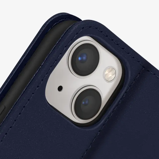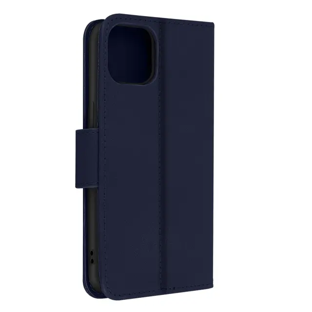Ovitek za Apple iPhone 13 Mini iz polnocno modrega usnja Premium, ki šciti vaš mobilni telefon in ga oblece v eleganco. Etui s prostorom za shranjevanje kartice in stranskim žepom za bankovce. Zašcita s podporno funkcijsko loputo.