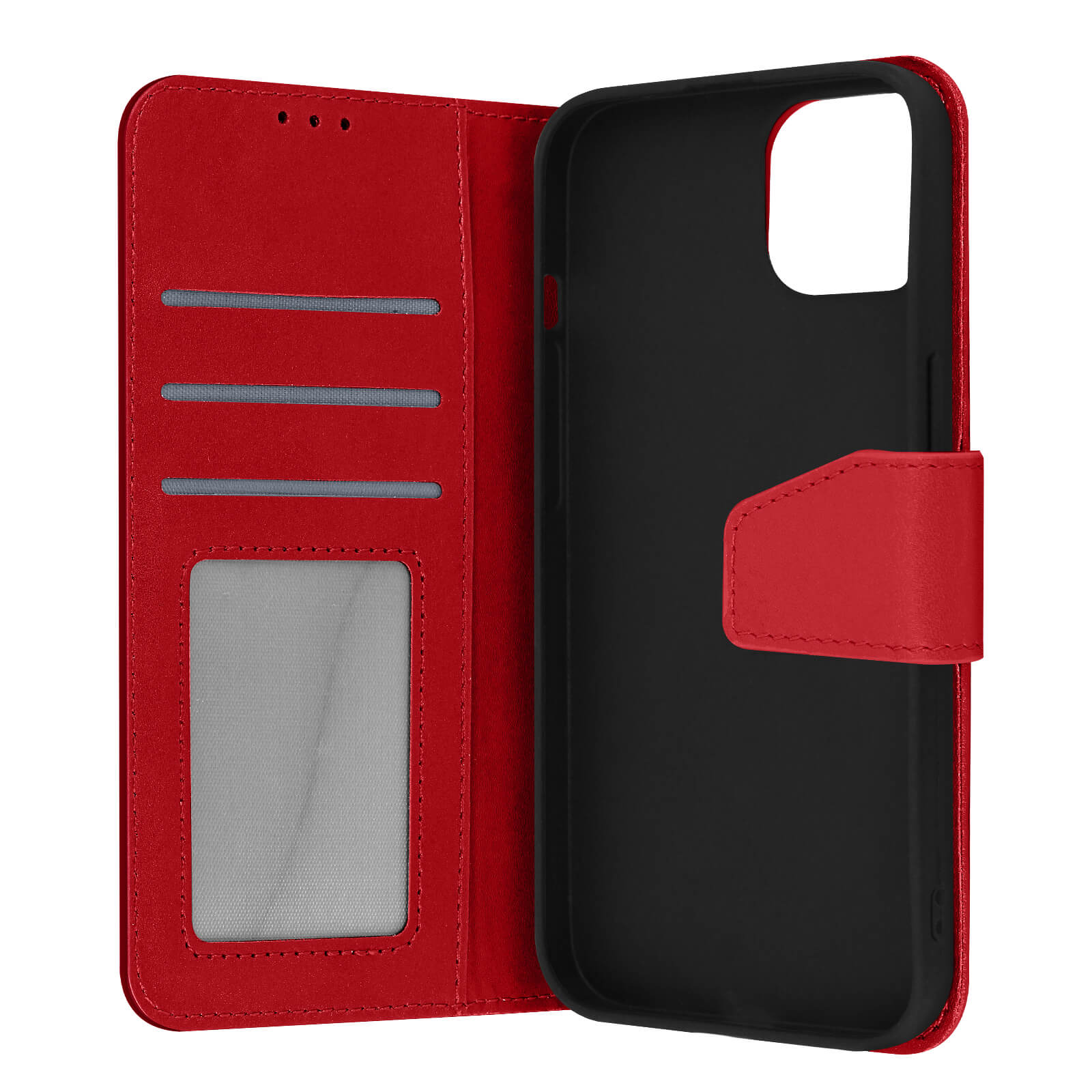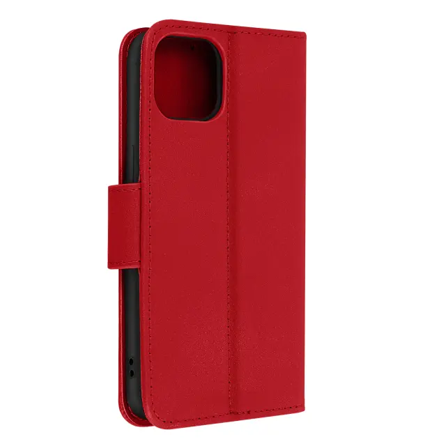 Ovitek za Apple iPhone 13 Mini iz rdecega usnja Premium, ki šciti vaš mobilni telefon in ga oblece v eleganco. Etui s prostorom za shranjevanje kartice in stranskim žepom za bankovce. Zašcita s podporno funkcijsko loputo.