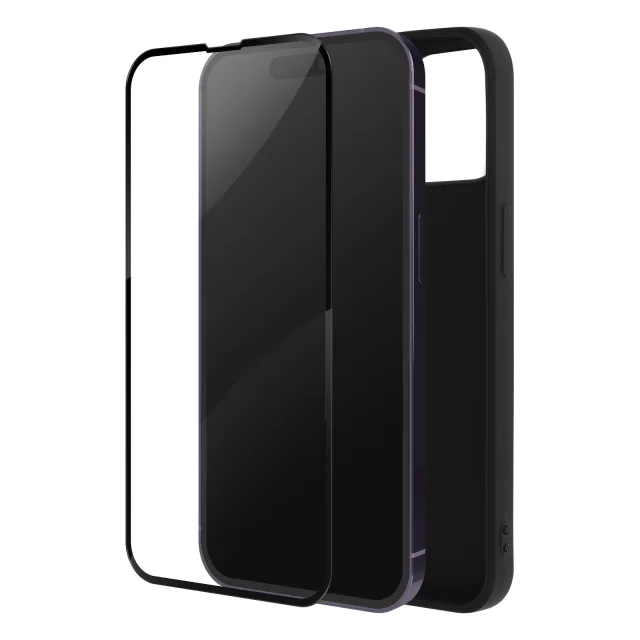 iPhone 14 Pro Max Full Protection, mat crn silikonski ovitek kaljeno steklo 9H crn obris