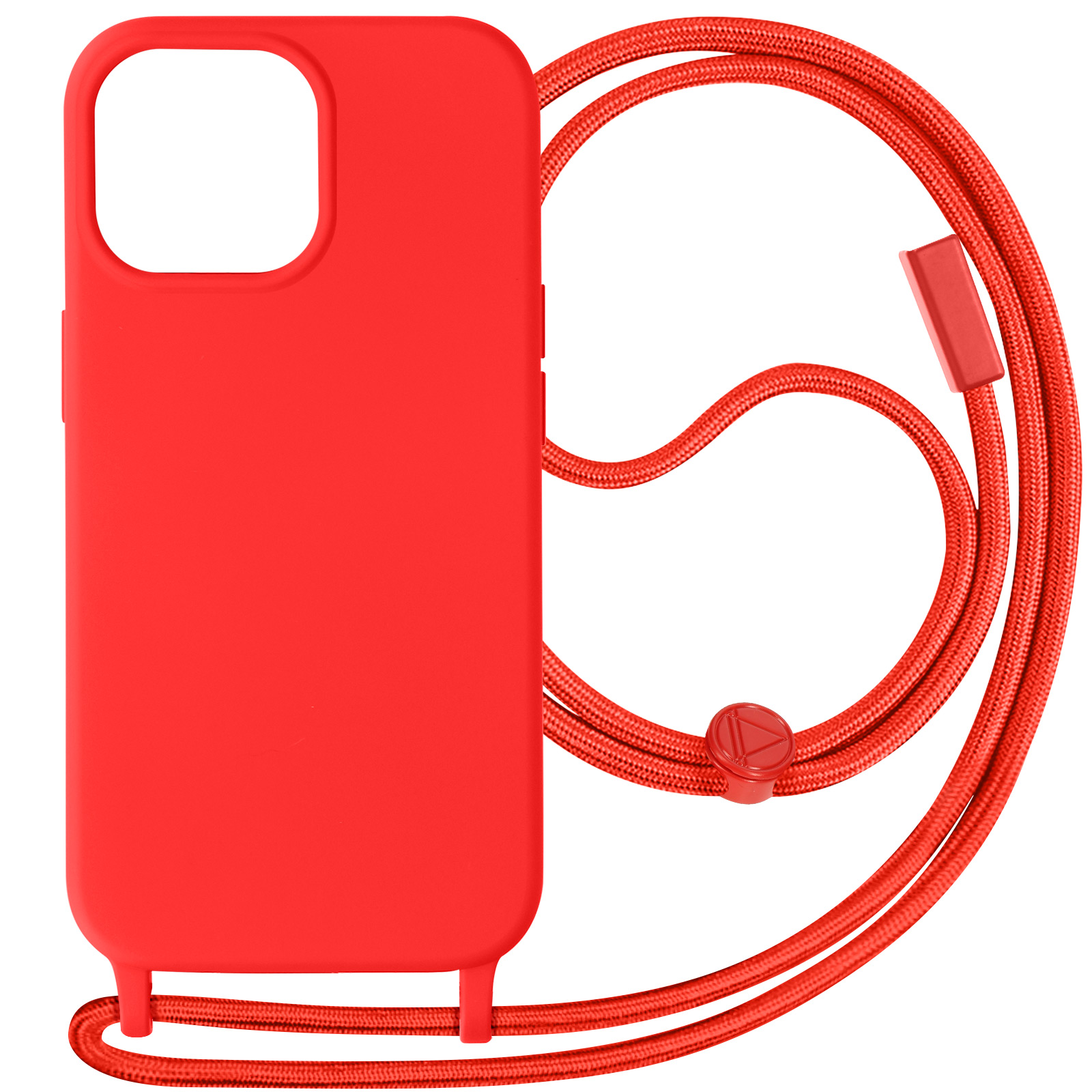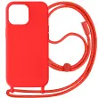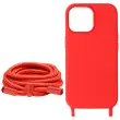 Apple iPhone 15 Pro Max rdec ovitek s vrvico iz serije Corda. Ovitek za iPhone 15 Pro Max iz polikarbonata in gel silikona. Zašcita za iPhone 15 Pro Max z 80 cm pletenim najlonskim trakom za nošenje mobilnega telefona okoli vratu ali kot naramnica.