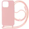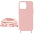 Ovitek s kablom Apple iPhone 15 Pro Max roza serije Corda. Ovitek za iPhone 15 Pro Max iz polikarbonata in gel silikona. Zašcita za iPhone 15 Pro Max z 80 cm pletenim najlonskim trakom za nošenje mobilnega telefona okoli vratu ali kot naramnica.