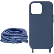 Ovitek s kablom Apple iPhone 15 Pro v polnocno modri barvi iz serije Corda. Ovitek za iPhone 15 Pro iz polikarbonata in gel silikona. Zašcita za iPhone 15 Pro z 80 cm pletenim najlonskim trakom za nošenje telefona okoli vratu ali kot naramnica.