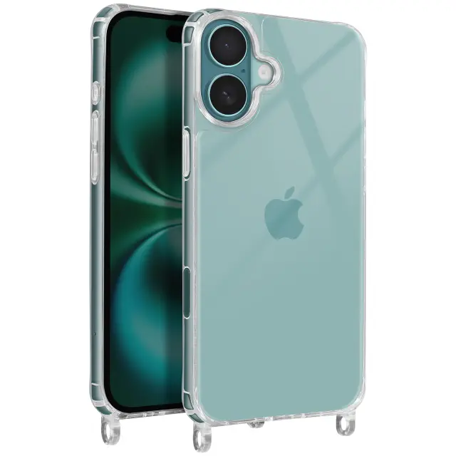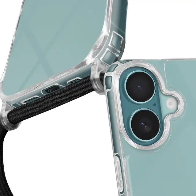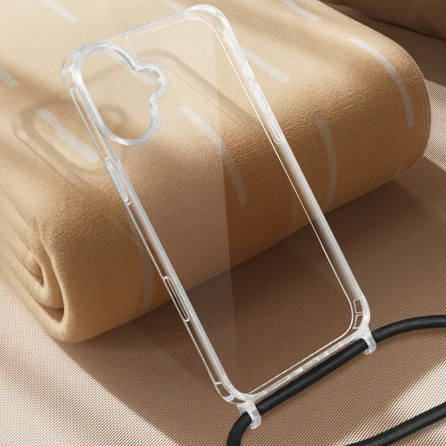 iPhone 16 Silikonski udarno odporen ovitek s pleteno vrvico, Prozorno