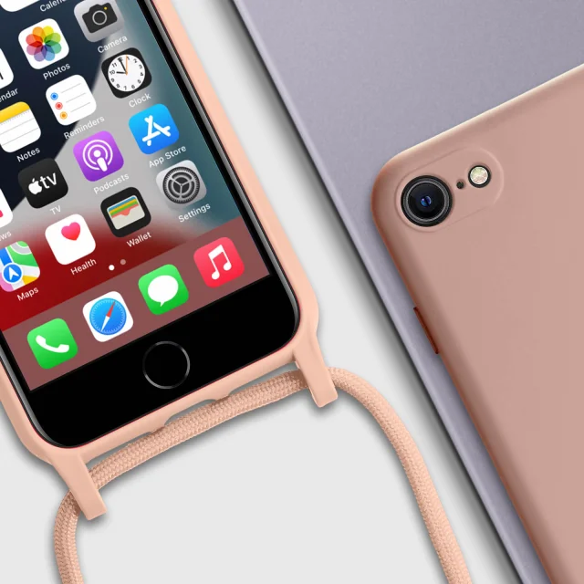 iPhone SE 2022, 2020 in 8, 7 Poltoga etui na vrvico z mehko notranjostjo, ovratnikom - roza