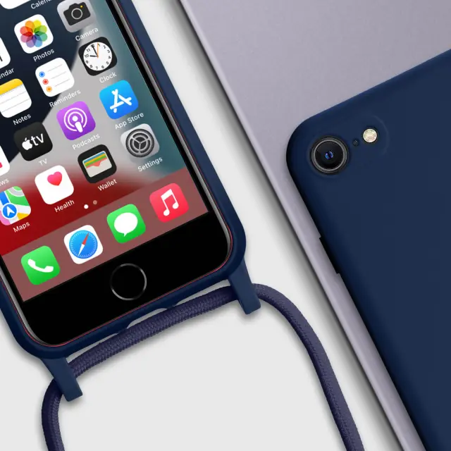Popoln hrbtni pokrov za vrvico za vrat, posebej zasnovan za vaš Apple iPhone 7/8/SE 2020/2022. Poltrdi ovitek za telefon v kombinaciji vrhunskih materialov : trdega polikarbonata in upogljivega silikona ;. Nastavljiva vrvica dolžine 80 cm za nošenje kot ovratni ali naramni pas. Ovitek objame vaš pametni telefon z mehko podlogo iz mikrovlaken, kar mu daje optimalno odpornost proti praskam.