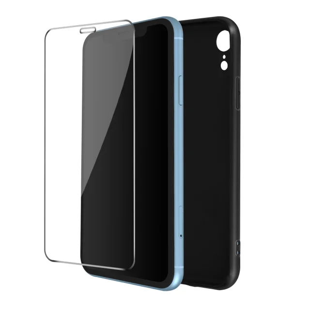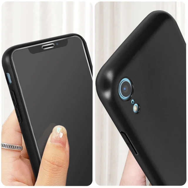 IPhone XR s popolno zašcito, mat crno silikonsko ohišje, kaljeno steklo proti prstnim odtisom