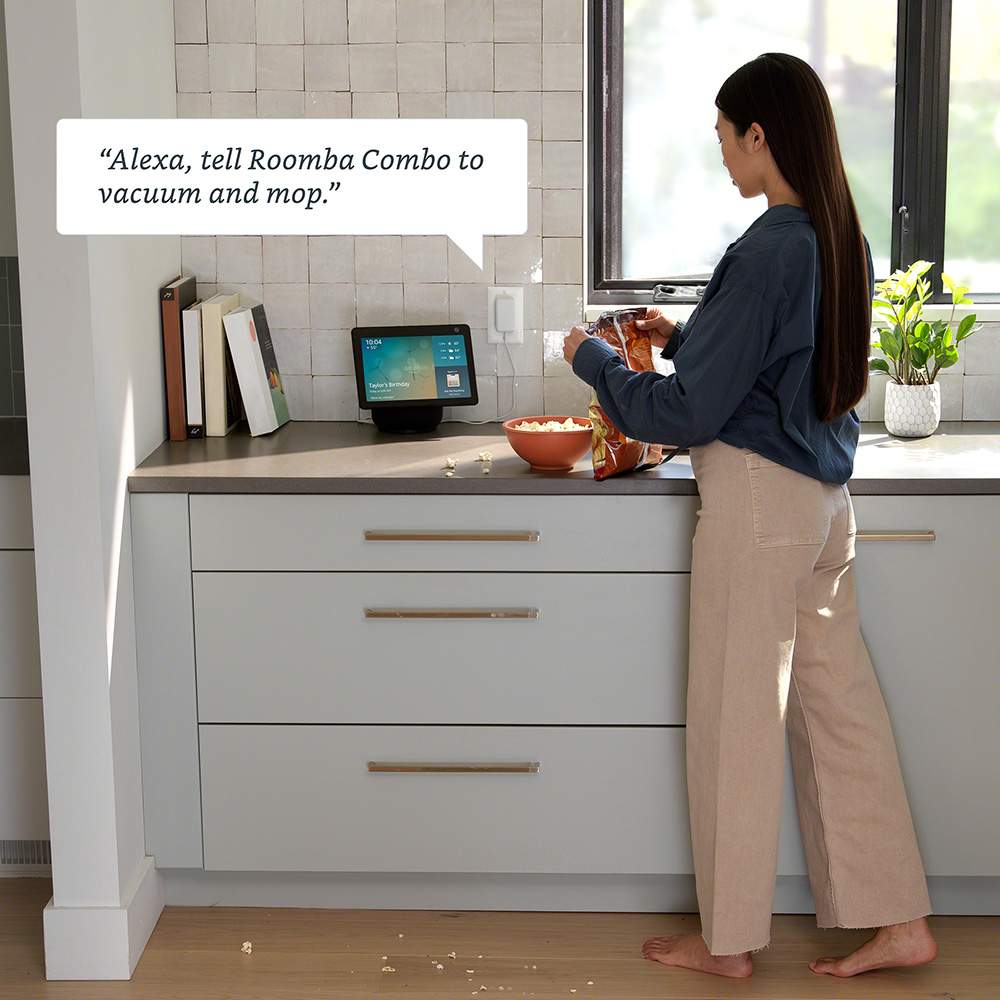 Seznanite jo z napravami*, v katerih so omogočeni asistenti Alexa, Siri, ali Google, in izgovorite ukaze, kot je »Povej Roombi Combu, naj začne sesati in brisati«. In že je v pogonu.