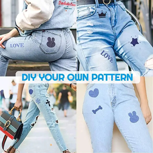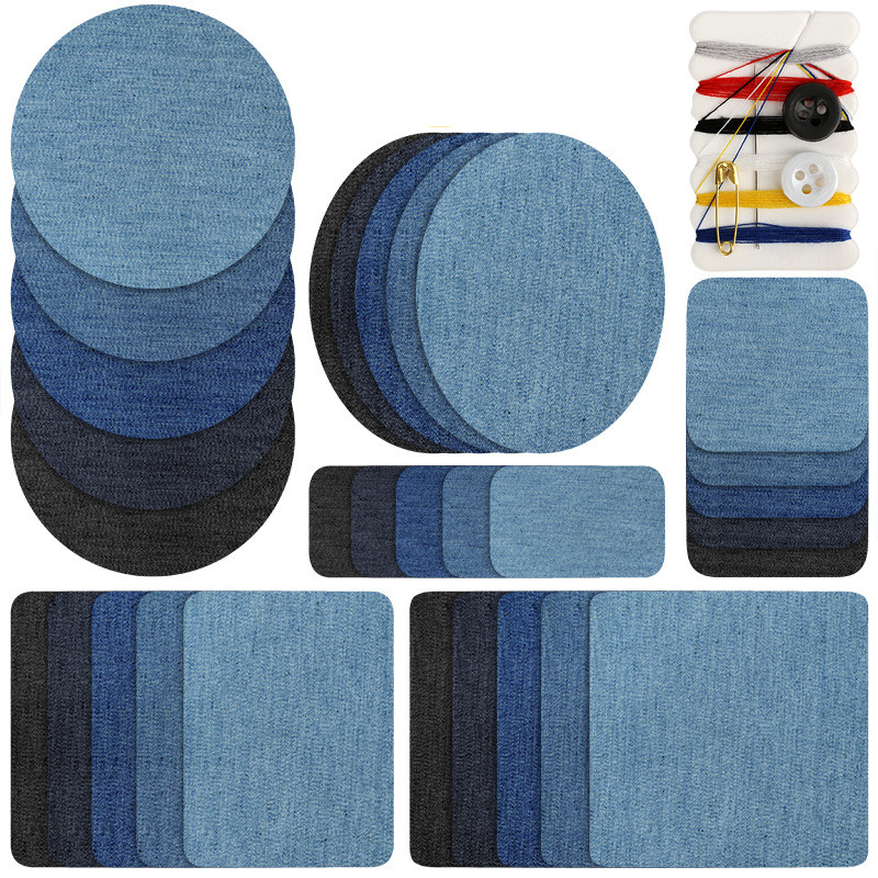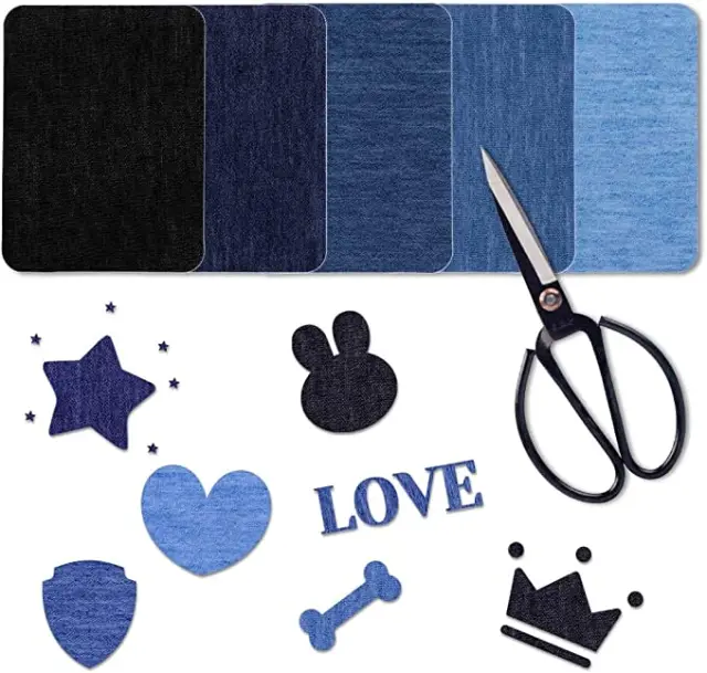 Obliži za popravilo iz trpežnega jeansa v različnih barvah in oblikah jeansa. Team našitki, ki jih lahko zlikate na raztrgano mesto, so elegantna, prilagodljiva in enostavna rešitev, kjer vam ni treba šivati. Obliž blaga lahko odrežete na želeno obliko. Prav tako je prijetno uporabljati za aplikacije.