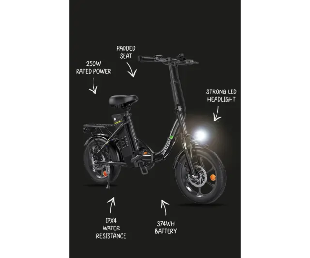 Preprosto prilagodite nastavitve hitrosti od 0 do 3 prestave, obidite omejitve hitrosti, vklopite/izklopite napajanje in osvetlite svojo pot s prednjim žarometom – vse na dosegu roke za popolno priročnost in nadzor. Kolo se ponaša tudi s svojim 250W brezkrtačnim zadnjim pogonom, ki vam omogoča doseganje visokih hitrosti in vožnjo z minimalnim naporom, ko uporabljate način »pomoči« (assisted mode).