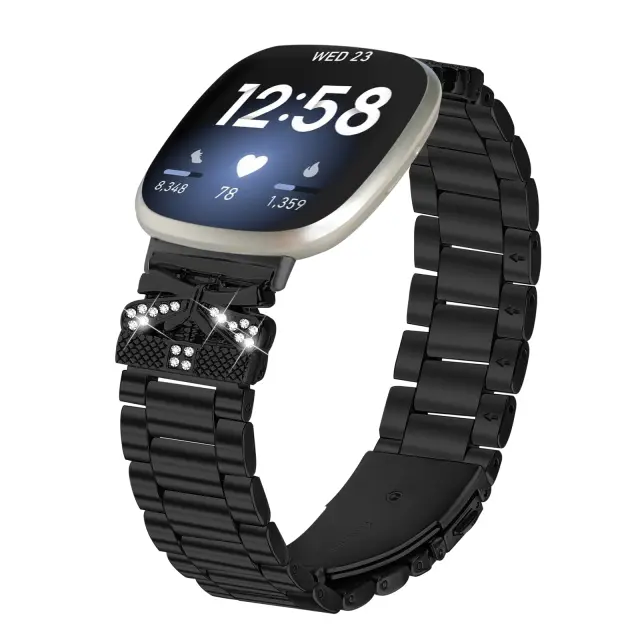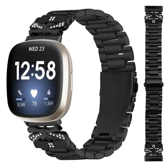 Iskriv pas za Fitbit Versa 3/4 z metuljem in tremi okrasnimi kamni Black