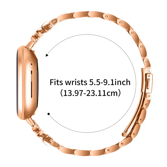Elegantno in stilsko: Ta pas za Fitbit Versa 3/4 ima čudovit dizajn metulja, okrašen s tremi bleščečimi okrasnimi kamni, ki vašemu vsakdanjemu videzu dodajo pridih elegance in glamurja. Rožnato zlata barva se odlično ujema z okrasnimi kamni in ustvarja prefinjen in privlačen dodatek.