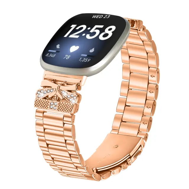Iskriv pas za Fitbit Versa 3/4 z metuljem in tremi okrasnimi kamni PinkGold