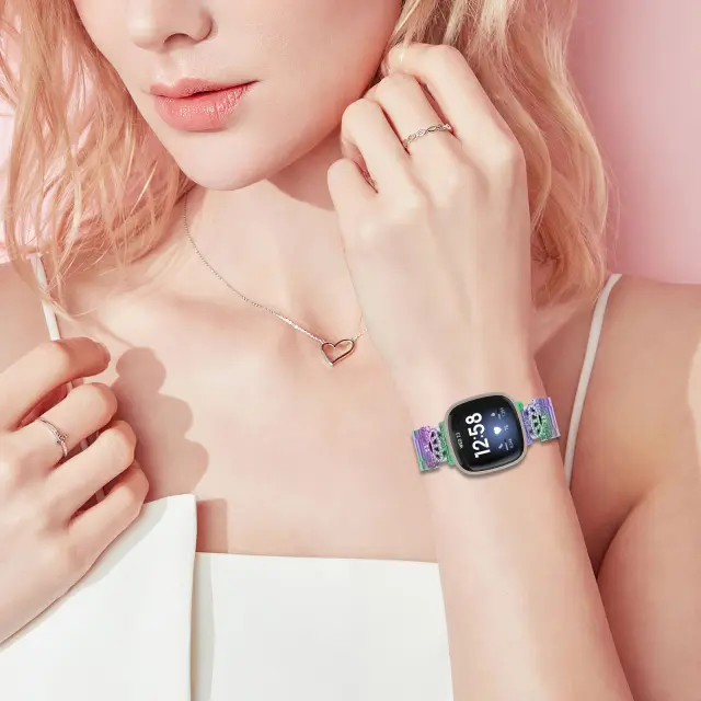 Eleganten in prefinjen dizajn: Izboljšajte svojo uro Fitbit Versa 3/4/Sense 2 s tem privlačnim pasom za uro s tremi perlicami. Njegov iskren dizajn doda pridih elegance in prefinjenosti vašemu vsakdanjemu videzu, zaradi česar je popoln dodatek tako za priložnostne kot tudi za formalne priložnosti.