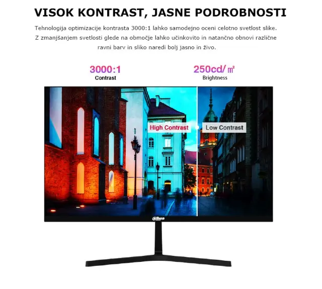 DHI-LM22-B200S je računalniški monitor, ki združuje kakovostno sliko, sodoben dizajn in prijaznost do oči. Zgrajen je v lahkem in stroškovno učinkovitem plastičnem ohišju, kar ga naredi praktičnega in enostavnega za namestitev v različne okolice.