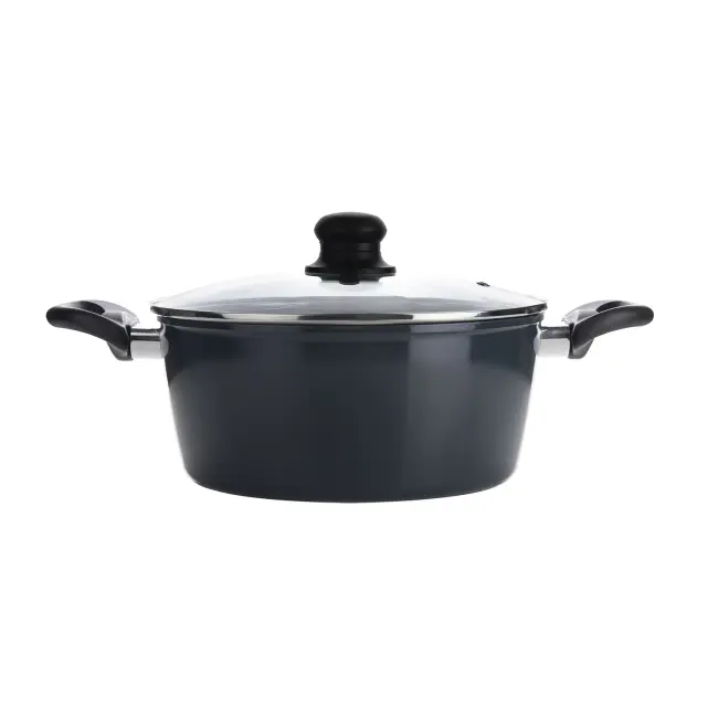 Posoda za peko s premerom 24 cm, ki se ne prijema. Vključno s steklenim pokrovom. Primerna za vse vrste toplotnih virov, kot so plinske, keramične, električne in indukcijske kuhalne plošče.