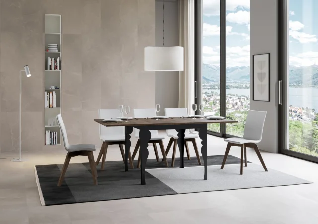 ITAMOBY Paxon Libra (90x90/180 cm) - oreh, barva nog: antracit - preklopna jedilna miza