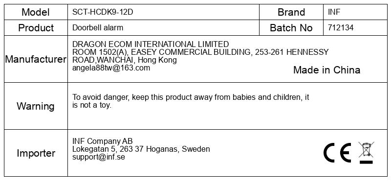 Da bi se izognili nevarnosti, izdelek hranite izven dosega dojenčkov in otrok, saj ni igrača.