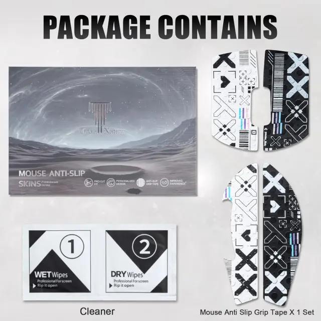 Enostavna namestitev: Namestitev naših nalepk za miško je enostavna. Predhodno izrezana oblika se popolnoma prilega Logitech MX Master 2 in 2S, kar zagotavlja brezhibno namestitev brez mehurčkov. Preprosto odlepite podlogo in previdno poravnajte nalepko z miško. Lepilo je dovolj močno, da ostane trdno na mestu, vendar dovolj nežno, da ga lahko odstranite brez puščanja ostankov. Vsak komplet vključuje čistilne robčke za pripravo površine, kar zagotavlja optimalen oprijem in dolgotrajno, varno prileganje. Uživajte v enostavni nadgradnji oprijema vaše miške.