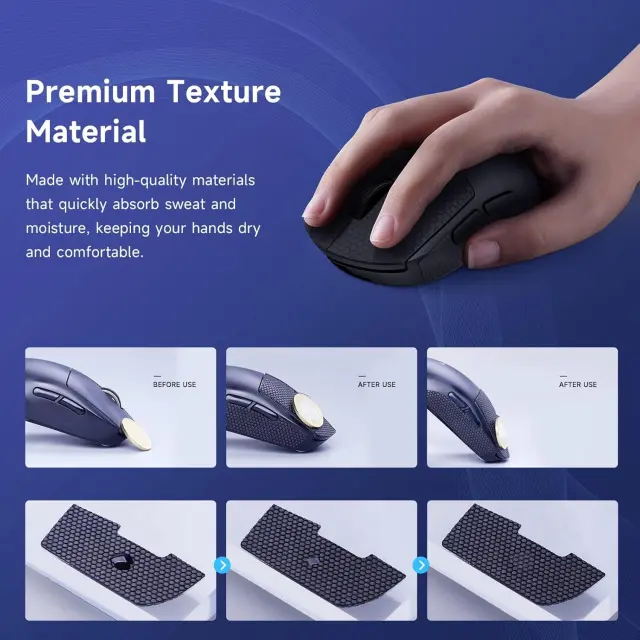 Vrhunski oprijem: Izkusite neprimerljiv nadzor in natančnost z našimi protizdrsnimi nalepkami za miško. Izdelane iz visokokakovostnega PU materiala, te nalepke zagotavljajo varen in udoben oprijem, zmanjšujejo zdrs in povečujejo vašo učinkovitost med intenzivnimi igralnimi sejami ali zahtevnimi delovnimi nalogami. Teksturirana površina zagotavlja, da vaša roka ostane trdno na mestu, tudi pri dolgotrajni uporabi, zmanjšuje utrujenost in izboljšuje splošno učinkovitost. Poslovite se od frustrirajočih zdrsav in pozdravite izboljšano natančnost in odzivnost.