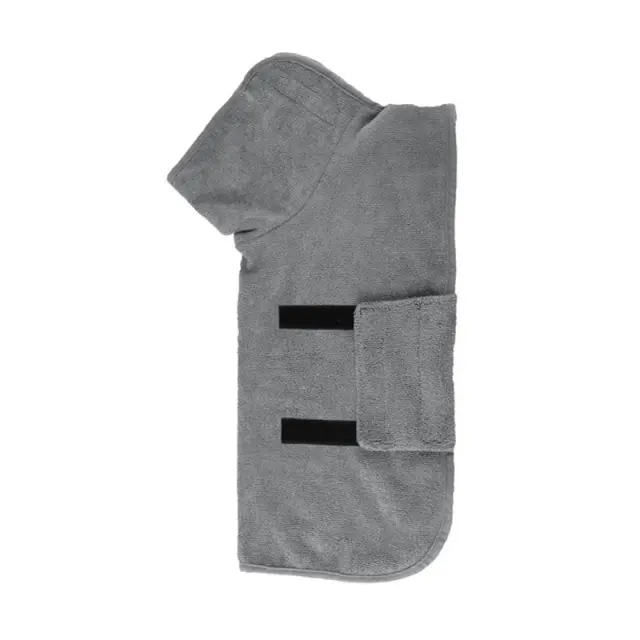 Nastavljiva in varna pritrditev: Ta brisača je zasnovana s priročnim zapenjanjem na ježka in ponuja nastavljivo prileganje, ki se prilagodi telesu vašega hišnega ljubljenčka. Zapenjanje zagotavlja varno in tesno ovijanje, ki preprečuje zdrs brisače, medtem ko se vaš hišni ljubljenček suši. Ta funkcija je še posebej uporabna za aktivne hišne ljubljenčke, ki se radi premikajo.