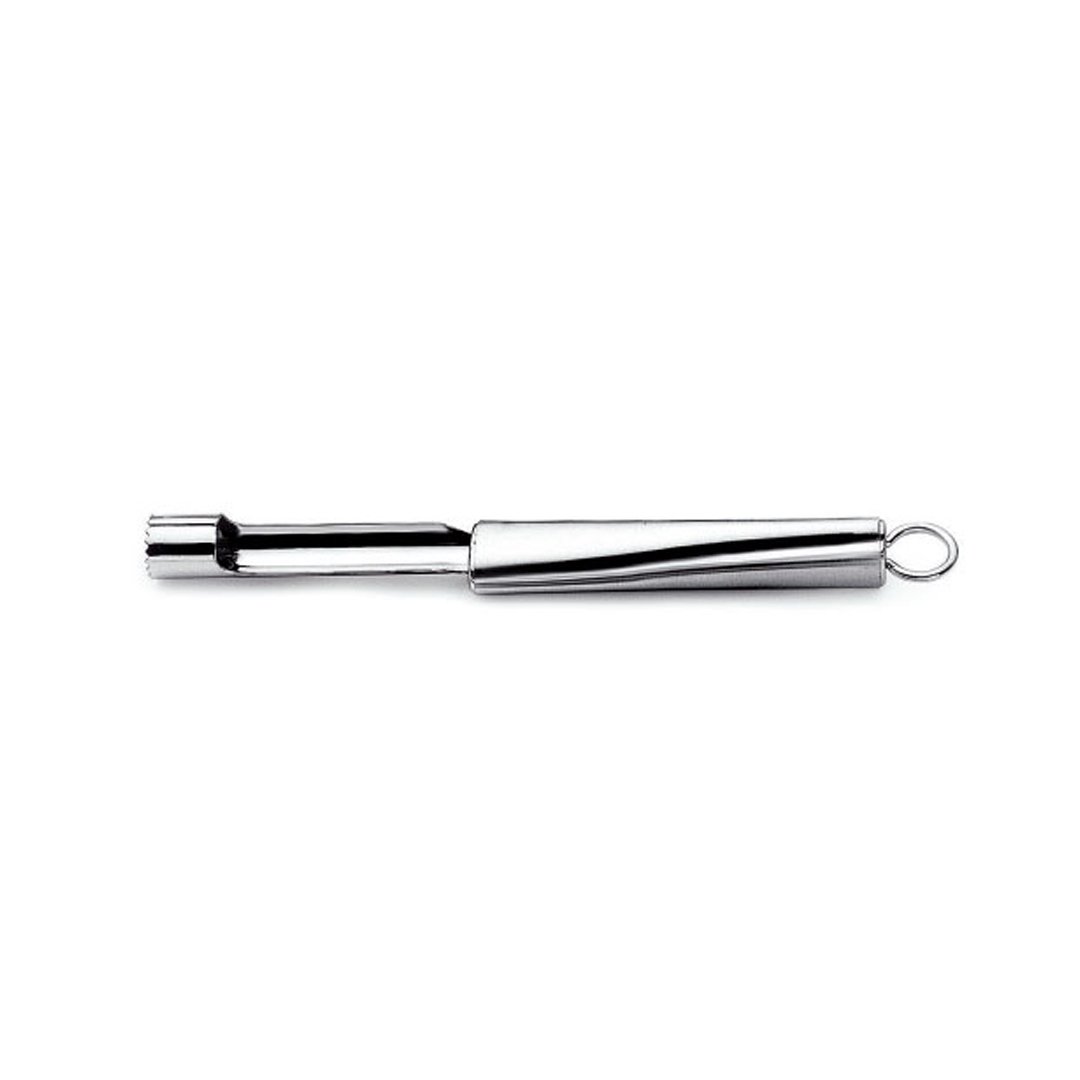 Z LAGOSTINA IZKOŠČIČEVALCEM CUCINIERI bo odstranjevanje pešk iz jabolk hitro in enostavno. Izdelan je iz je iz visokokakovostnega nerjavečega jekla 18/10, ki je odporno proti koroziji in živilskim kislinam. Ergonomsko oblikovan ročaj zagotavlja udobje med rezanjem, spodnje nazobčano rezilo pa bo zlahka predrlo lupino in jabolko.