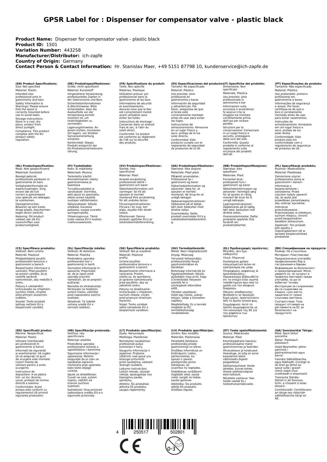 Podatki o proizvajalcu vključujejo informacije (naziv, naslov, državo in elektronski naslov) povezane s proizvajalcem izdelka.