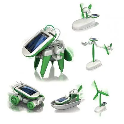 To je izobraževalni gradbeni komplet, ki vam omogoča sestavljanje šestih različnih robotskih vozil na sončno energijo.