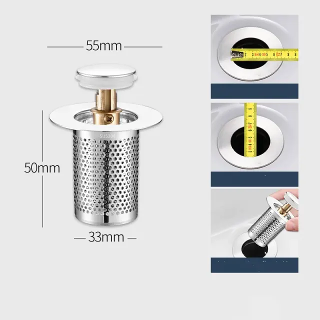 Učinkovita zasnova proti zamašitvi: ta odtok za lovljenje las s svojim naprednim mehanizmom proti zamašitvi učinkovito preprečuje, da bi umazanija, dlake in drugi delci zamašili vaše odtoke, s čimer zagotavlja nemoteno in prosto odtekanje vode v vaši kuhinji, kopalni kadi, umivalniku in vodovodnih ceveh.