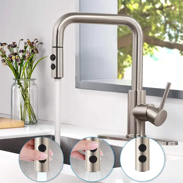 Vsestranska funkcionalnost: Ta izvlečna glava pipe ponuja vsestransko funkcionalnost z dvema načinoma pršenja. Z enim samim gumbom enostavno preklapljajte med nežnim curkom za polnjenje loncev in močnim curkom za izpiranje posode.