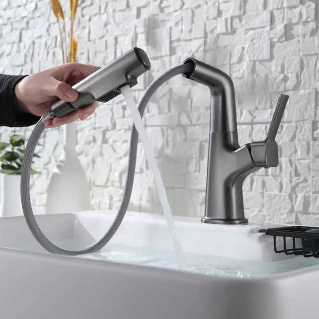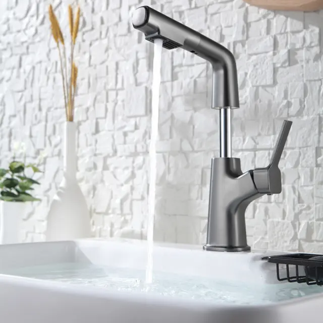 Priročna izvlečna razpršilka: S priročno izvlečno razpršilko lahko enostavno dosežete vsak kotiček vašega pomivalnega korita. Idealen je za izpiranje posode, pranje zelenjave ali polnjenje velikih loncev in ponev. Gladki mehanizem za umik zagotavlja, da se razpršilna glava enostavno umakne na svoje mesto.