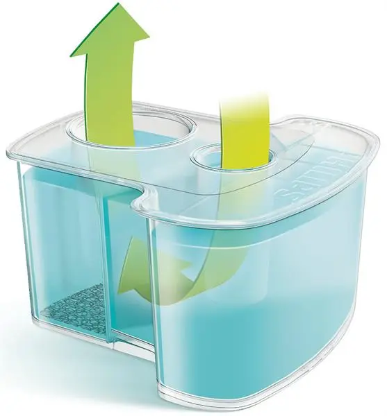Sistem dvojnega filtriranja in aktivnega podmazovanja vaš brivnik očisti do 10x bolje, kot če bi uporabili samo vodo.