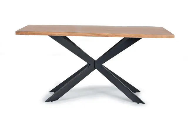 Jedilna miza iz naravnega akacijevega lesa in črnih kovinskih nog