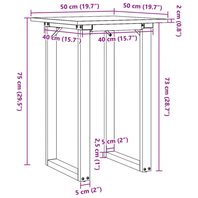 Jedilna miza - Kuhinjska miza - Jedilni stol O okvir 50x50x75 cm trdna borovina lito železo