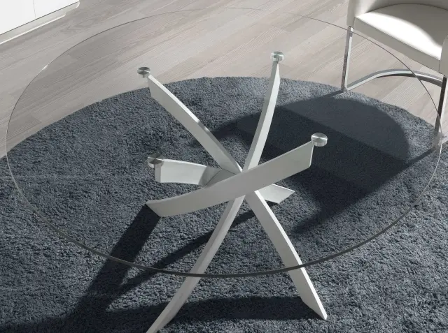 Jedilna miza okrogla kaljeno steklo in belo jeklo