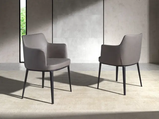 S tkanino oblazinjen jedilni stol 4112 Angel Cerdá S.L. Moderno oblikovan jedilni stol, oblazinjen s tkanino iz norke. Avantgarden, a brezčasen stol s črnimi nogami iz nerjavnega jekla, ki bo postal nepogrešljiv kos v vaši jedilnici. Sedež iz poliuretanske pene s prostornino 25 kg/m3 in minimalistična zasnova mu dajeta edinstven in drugačen slog, ki ga iščete v svojem domu, v kombinaciji z največjim udobjem. - STIL: Ta sodobno oblikovan jedilni stol, oblazinjen v tkanino iz norke, bo poskrbel za prefinjen in eleganten pridih, ki ga iščete za svoj dom, zvest najnovejšim trendom v dekoriranju. - Vsestranski in funkcionalni dizajn omogoča, da se prilega vsaki vrsti dnevne sobe, jedilnice ali kuhinje in postane glavni protagonist prostora. - KAKOVOST: Vsi naši stoli so izdelani iz najkakovostnejših materialov, kar zagotavlja dolgotrajno in funkcionalno pohištvo. - DEKORACIJA: Zaradi izvirne zasnove ter kombinacije tkanine iz norke in jesenovih nog v barvi oreha bo dosegel osebni pridih in toplino, ki ju iščete v svoji jedilnici. - UDOBJE: Velikost njegovega sedeža in oblazinjenje iz poliuretanske pene s prostornino 25 kg/m3 ter ovojna oblika naslonjala vam bodo omogočili največje udobje, ne da bi pri tem zapustili najvišje trende.