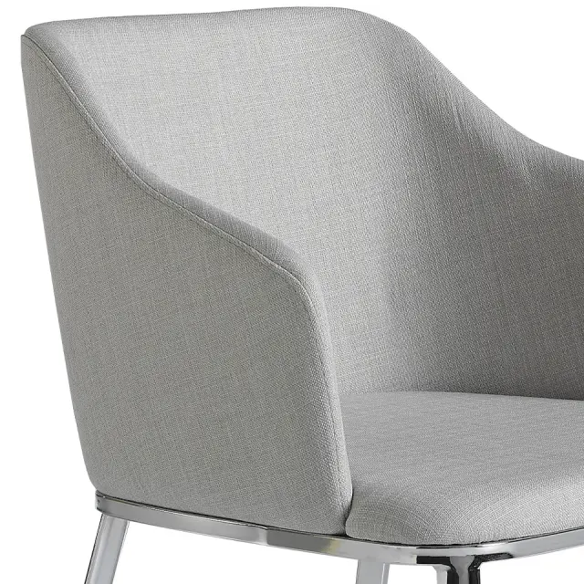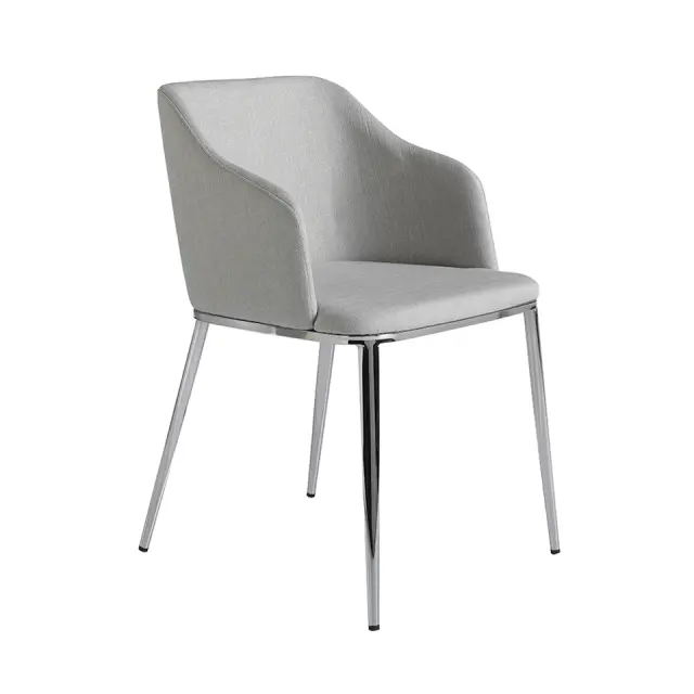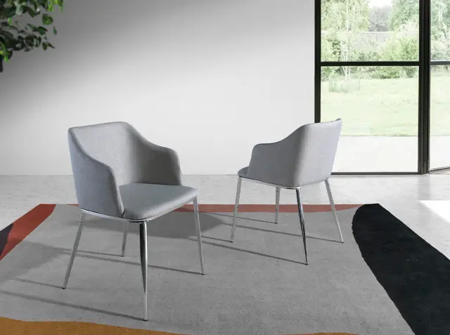 Jedilni stol, oblazinjen s sivo tkanino 4050 Angel Cerdá S.L. Moderno oblikovan jedilni stol z nasloni za roke, oblazinjen s sivo tkanino. Sodoben in brezčasen stol z nogami iz 22 mikronov kromiranega jekla, ki bo postal nepogrešljiv del vaše jedilnice. Njegov sedež in naslonjalo iz poliuretanske pene s prostornino 25 kg/m3 ter ovijajoča oblika mu dajeta edinstven in drugačen slog, ki ga iščete v svojem domu, v kombinaciji z največjim udobjem. - STIL: Ta eleganten jedilni stol z nasloni za roke, oblazinjen v sivo tkanino s sodobnim dizajnom, bo poskrbel za drugačen in prefinjen pridih, ki ga iščete za svoj dom, zvest najnovejšim trendom v dekoriranju. - Vsestranski in funkcionalen: njegova zasnova omogoča, da se prilega vsaki vrsti dnevne sobe ali jedilnice in postane glavni junak prostora. - KAKOVOST: Vsi naši jedilni stoli so izdelani iz najkakovostnejših materialov, kar zagotavlja dolgotrajno in funkcionalno pohištvo. - DEKORACIJA: Njihova brezčasna zasnova odraža najbolj izviren in oseben dotik blagovne znamke Angel Cerdá ter najbolj prefinjen slog za vašo jedilnico. - UDOBJE: Njegovo ovijajoče naslonjalo ter velikost sedeža in oblazinjenje iz poliuretanske pene s prostornino 25 kg/m3 vam bodo omogočili uživanje v največjem udobju, ne da bi pri tem zanemarili najnovejše trende