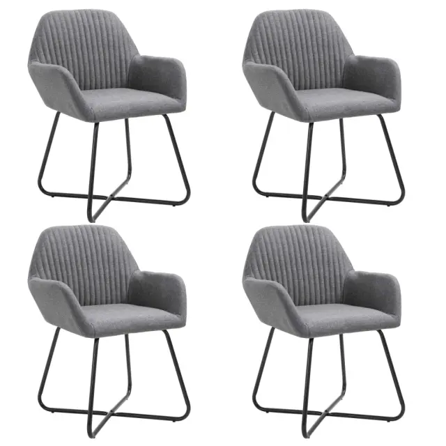 Dodajte svoji jedilnici ali dnevni sobi moderen pridih z našimi udobnimi in stabilnimi jedilnimi stoli! Ta komplet 4 jedilnih stolov iz kakovostnega blaga je estetsko in ergonomsko zasnovan tako, da bo predstavljal udoben dodatek za vaš dom.