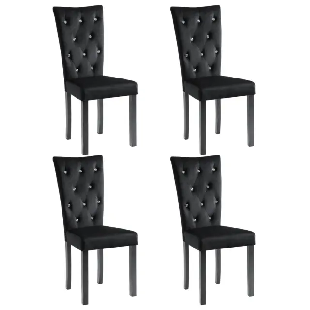 Z našim kompletom žametnih jedilnih stolov lahko svojemu notranjemu dekorju dodate nekaj elegance. Stoli so okrašeni s kristali, ki jim dajejo glamurozen videz.